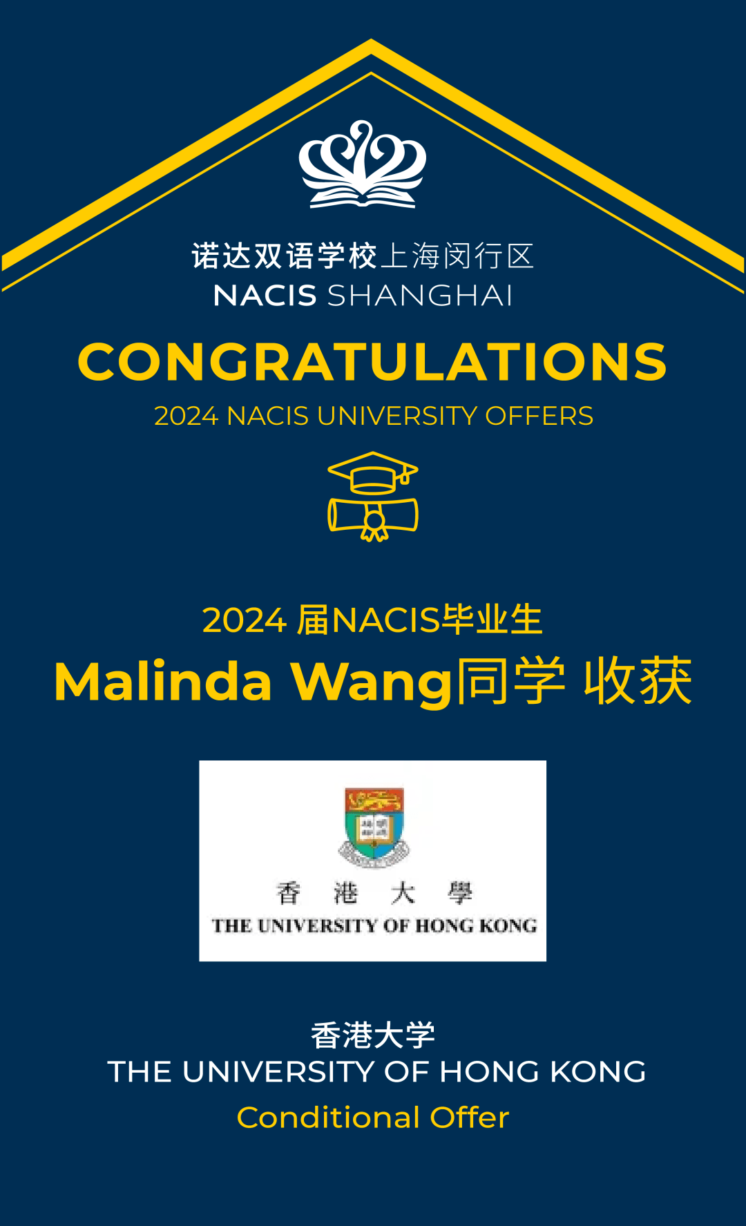 Miti與Malinda被香港大學(xué)錄取的優(yōu)異結(jié)果充分展示了她們在NACIS的學(xué)術(shù)能力、領(lǐng)導(dǎo)才能以及社會(huì)實(shí)踐活動(dòng)的能力。她們的成功不僅代表了她們個(gè)人的輝煌,更是對NACIS所提供的高標(biāo)準(zhǔn)教育和指導(dǎo)的最好肯定。